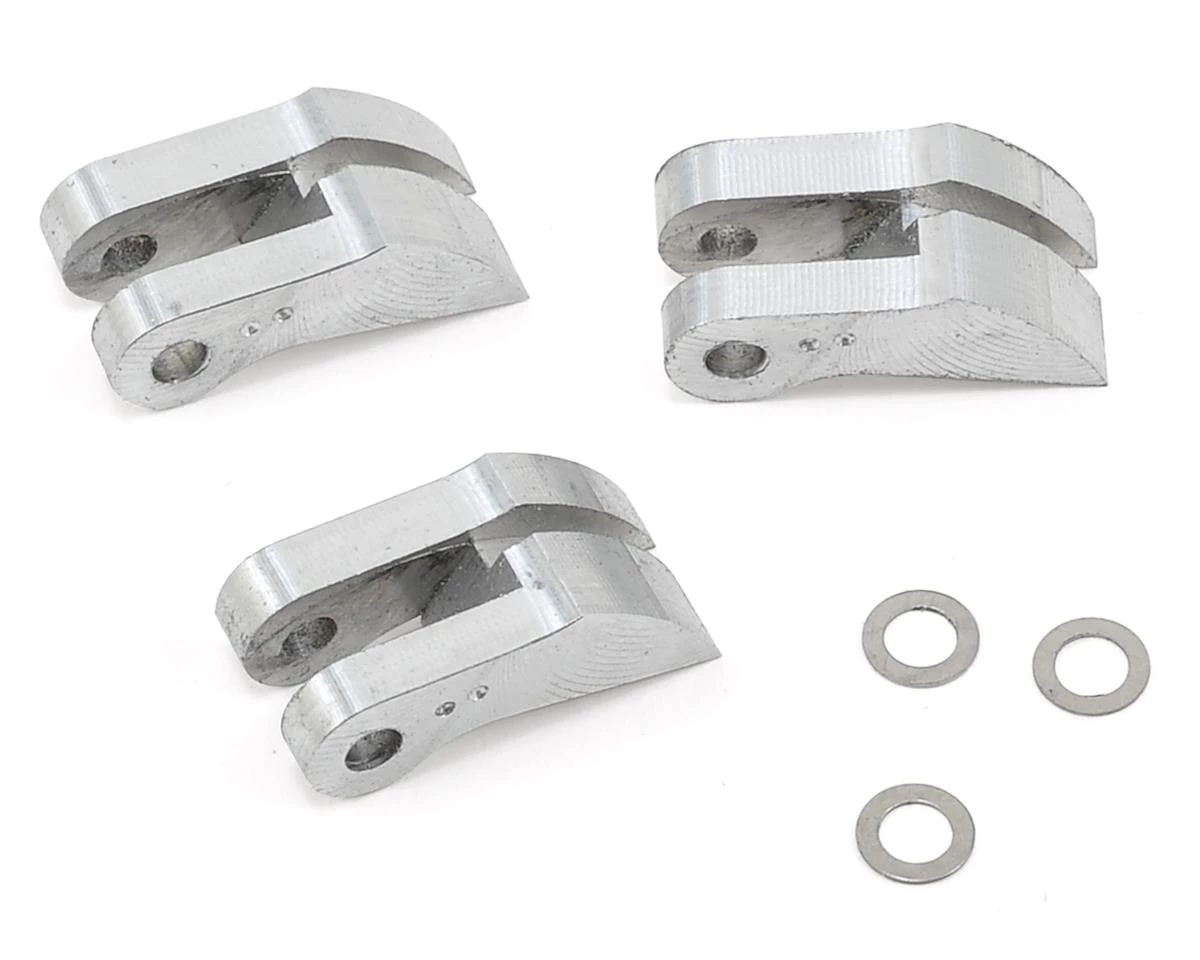 This is a set of three ProTek R/C Mugen 7075 Aluminum Clutch Shoes. ProTek R/C clutch shoes are designed to work with the stock flywheel to provide increased performance over the standard clutch shoe material. These shoes are precision machined from 7075 billet grade aluminum to provide a clutch shoe that is stable at high temperatures, offers consistent wear and increased clutch performance. ProTek R/C clutch shoes are an excellent option for high horsepower engines and harsh driving conditions, when the stock factory clutch shoes are not up to the task.